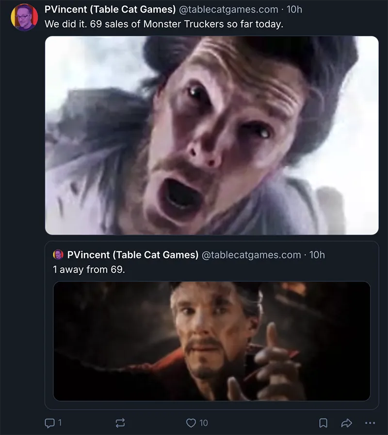 Now there was a “hidden” value aside from straight up sales. There were a pretty good amount of shares and likes on social media, meaning more people saw the post. The sale itself was a bit of an event for me in that there was something happening that was special, which gives people a reason to get excited and share the news. Awesome folks shared my posts or made their own saying how much they liked Monster Truckers, it gave them an opportunity and a reason to do it. I know that I try to share other people’s stuff as much as I can normally, but I’ll do it extra if they’ve got some sort of big goal or event going on.